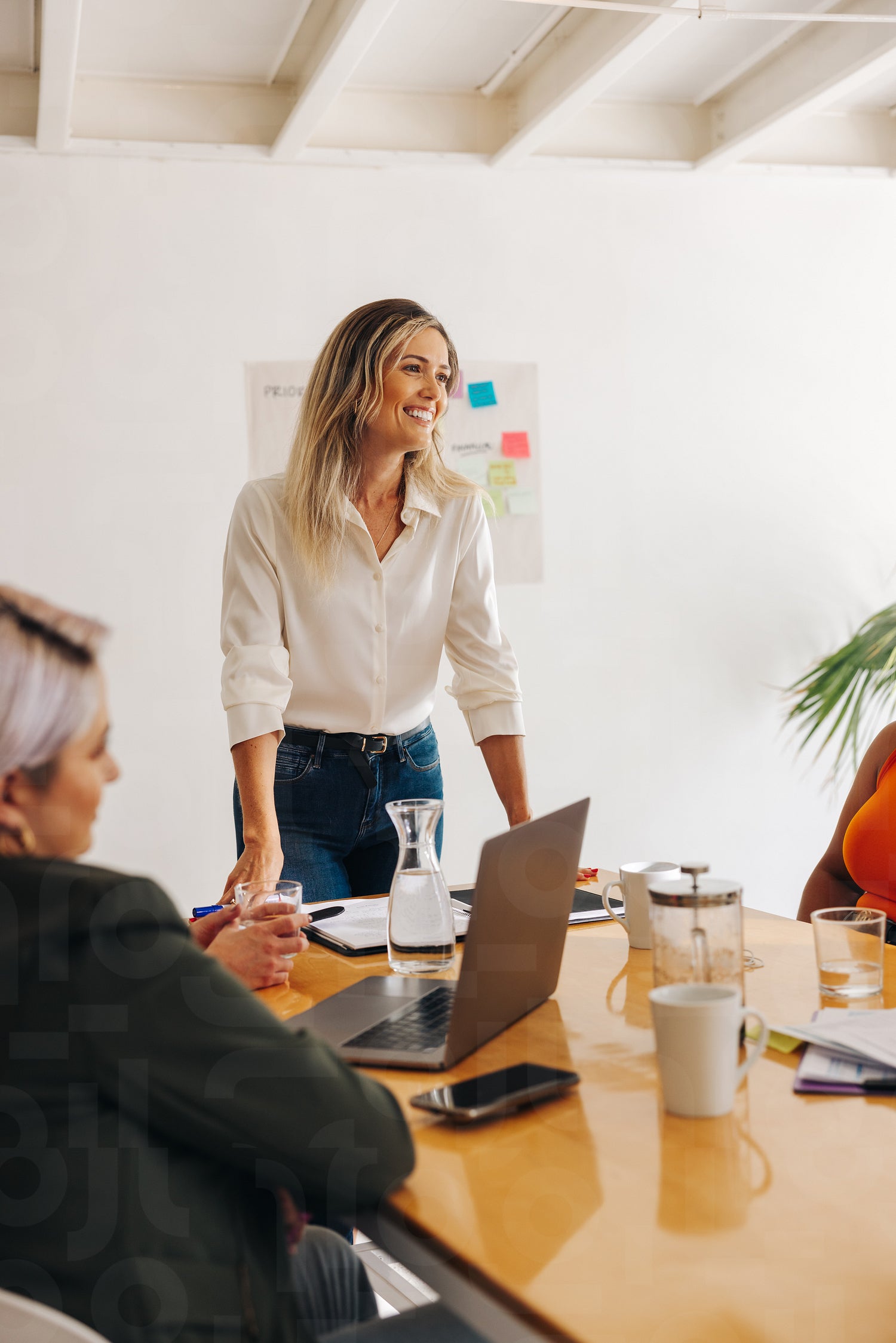 Happy team leader having a meeting with her colleagues