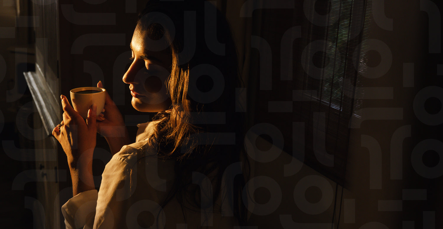 Hotel relaxation. Attractive young brunette woman having a cup of coffee while relaxing in her hotel room. Young tourist woman enjoying a weekend getaway in a luxury holiday resort.