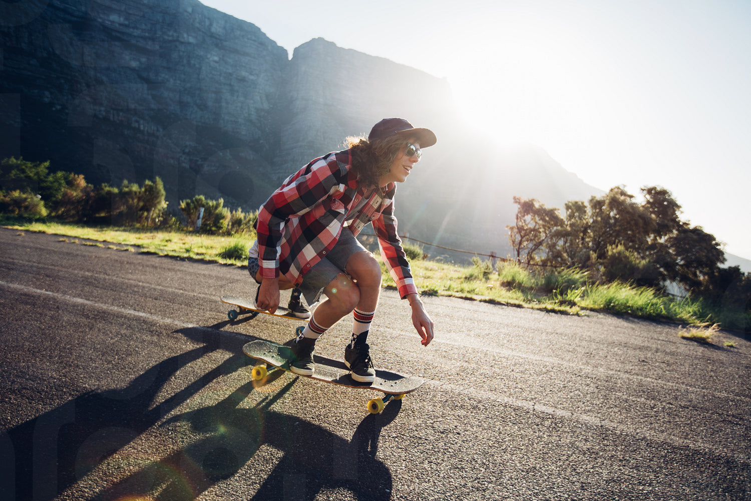 Man longboarding outdoors on countryside road