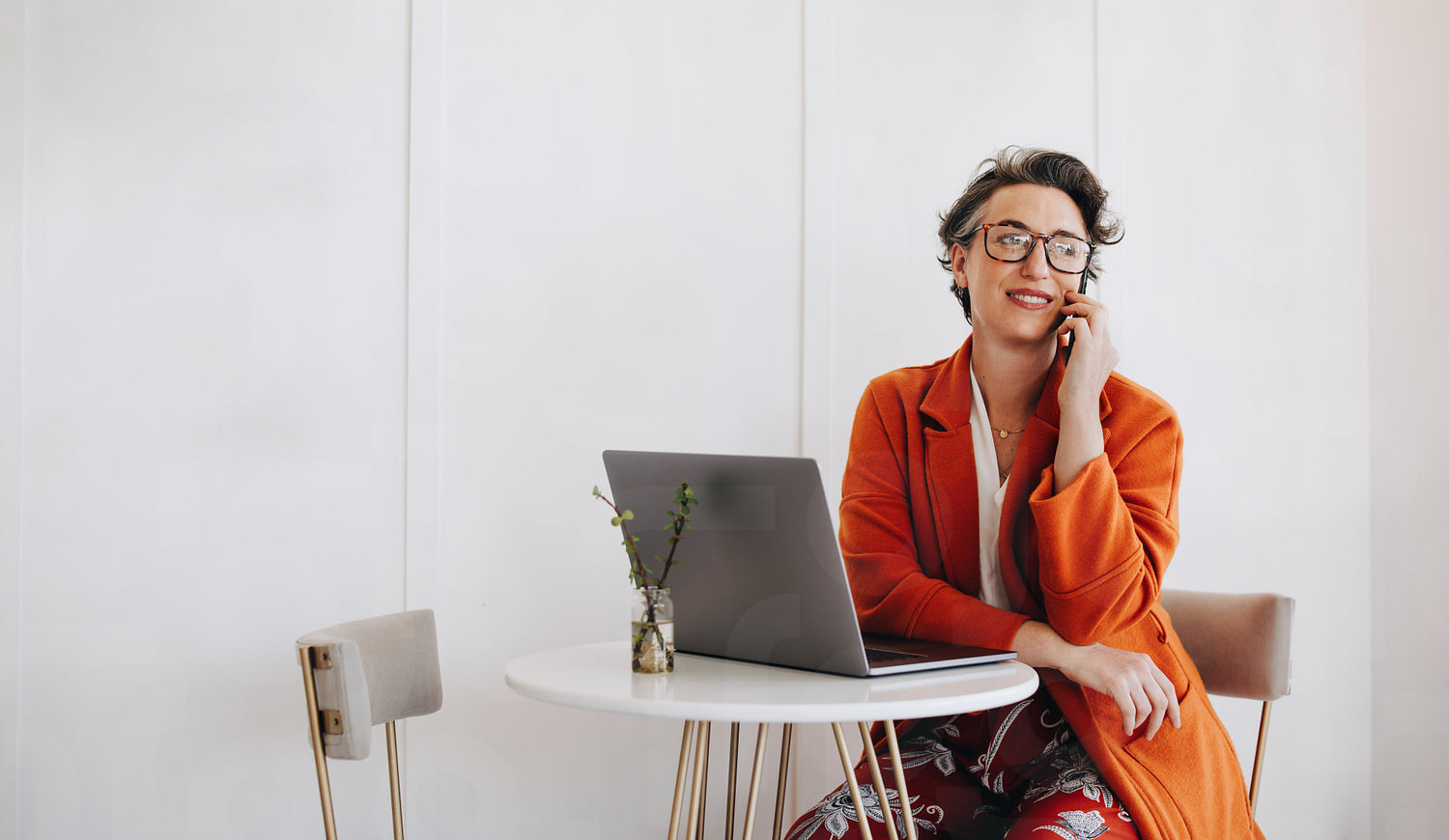 Mature business woman making a phone call while working remotely. Mature businesswoman making contact with one of her clients while working in a cafe.