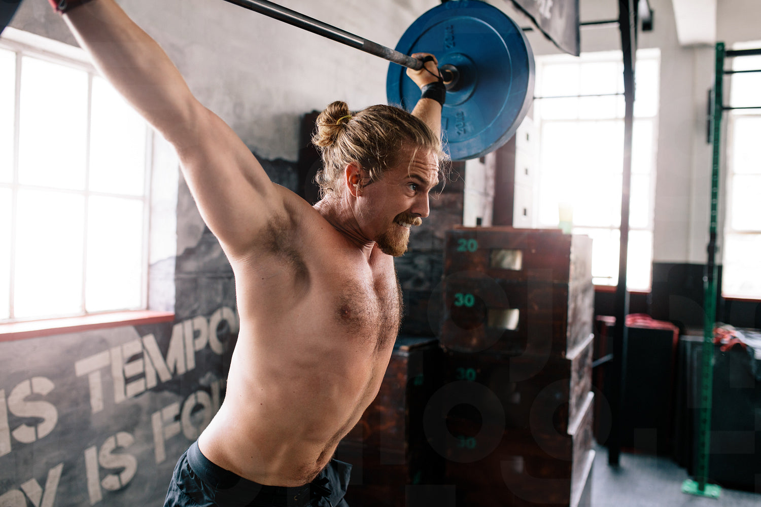 Muscular man lifting weights at a gym. Fit male athlete working out at health club.