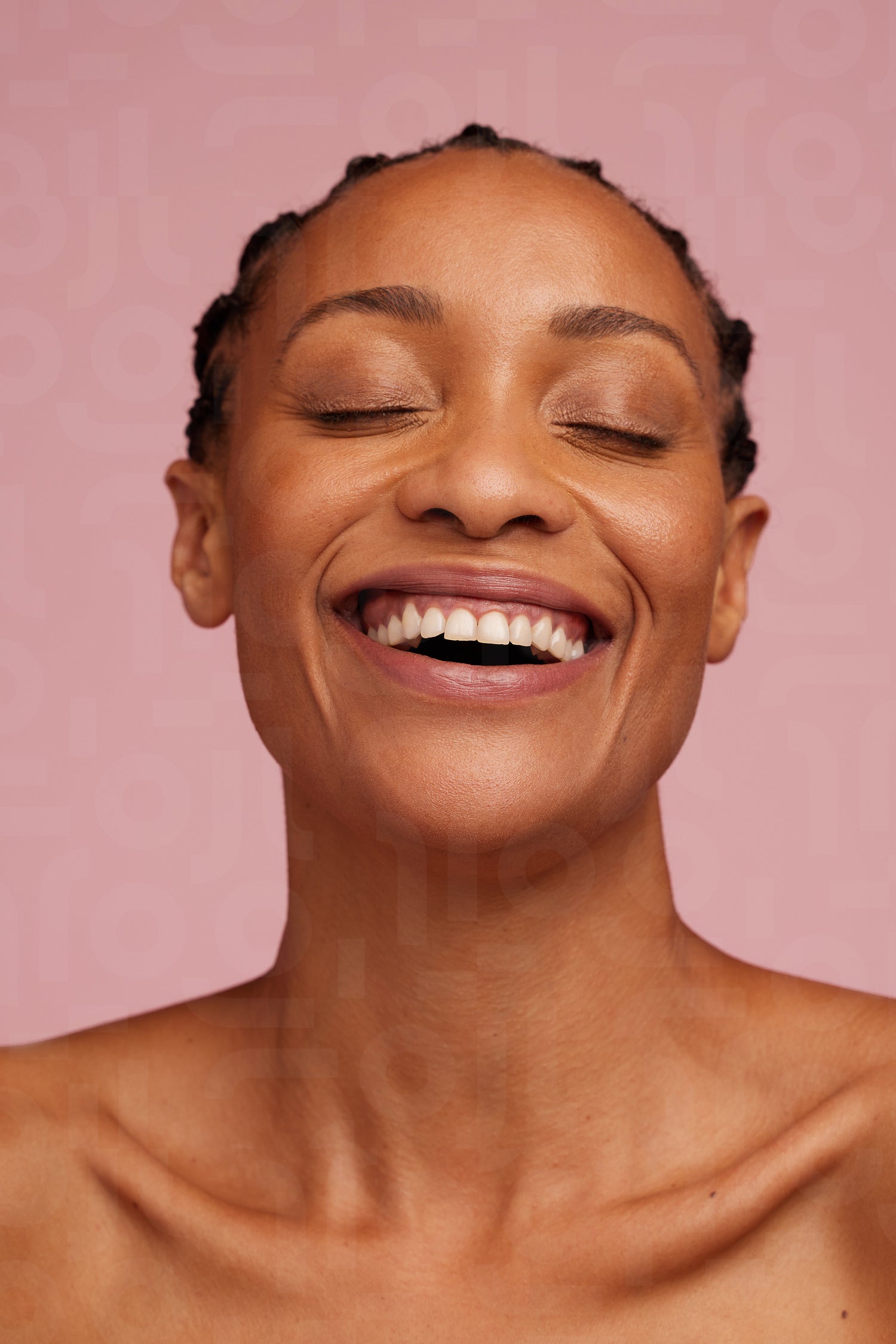 Closeup of a beautiful young woman with perfect healthy skin on pink background. Natural Beauty with fresh and clean skin.