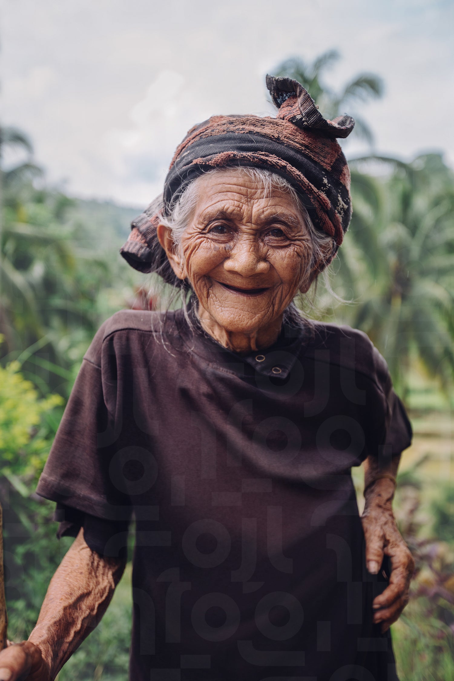 Old woman standing outdoors and smiling