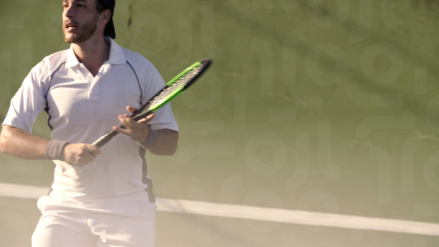 Professional sportsman playing tennis on a hardcourt outdoors. Professional tennis player hitting forehands and backhand on hard court.
