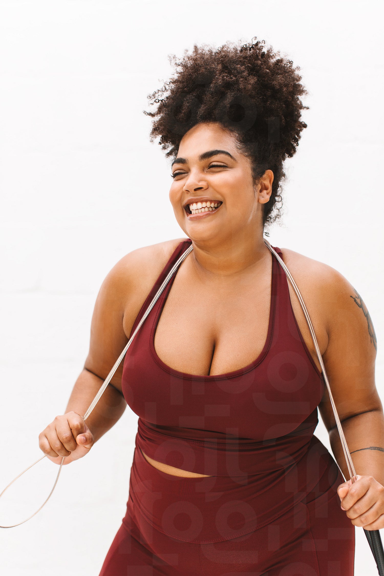 Plus size woman holding skipping rope