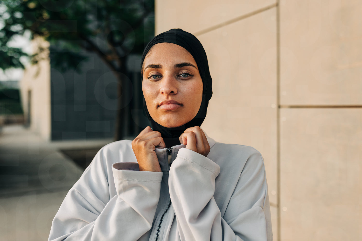 Portrait of a sporty Muslim woman looking at the camera outdoors