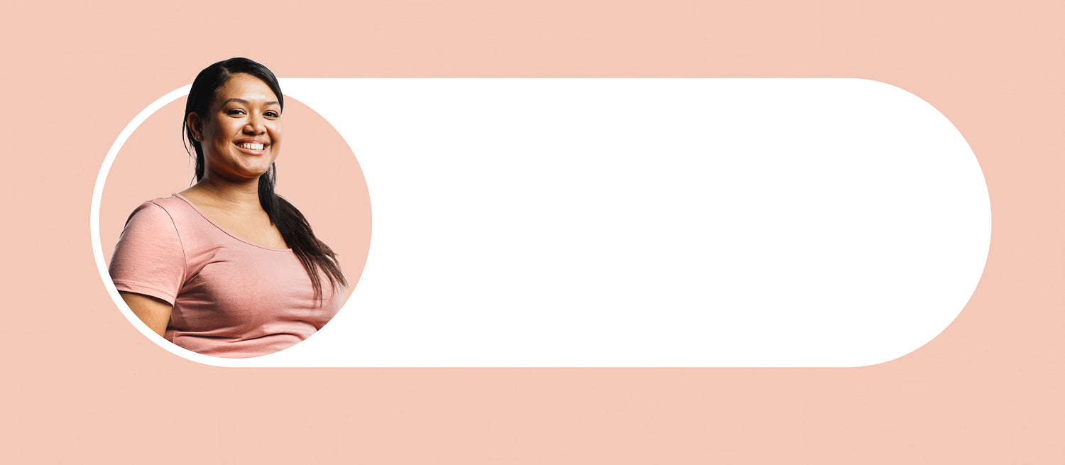 Headshot of a young woman on a circle design. Close up of smiling woman on pink colour designer background.