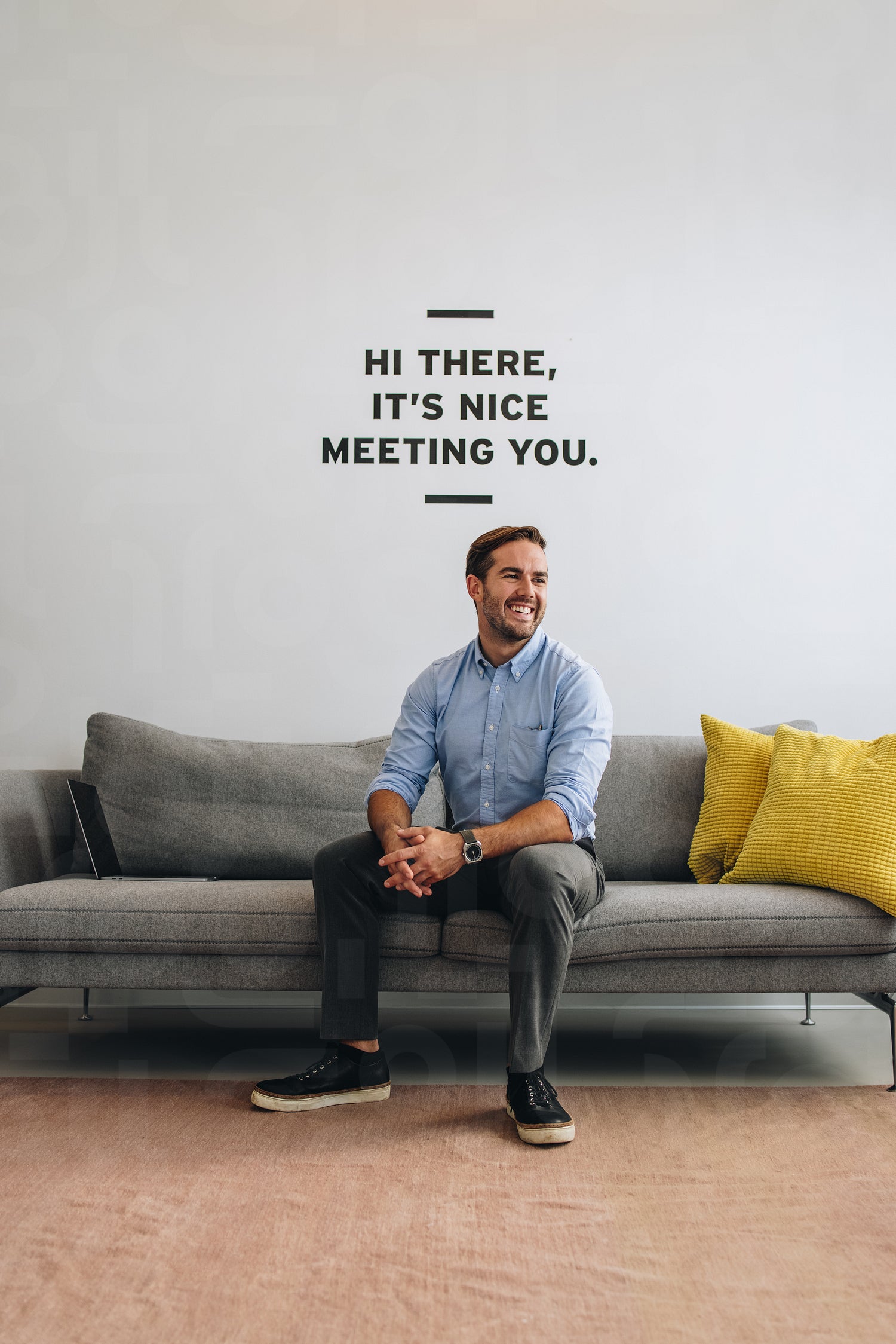 Positive male executive on sofa at lobby