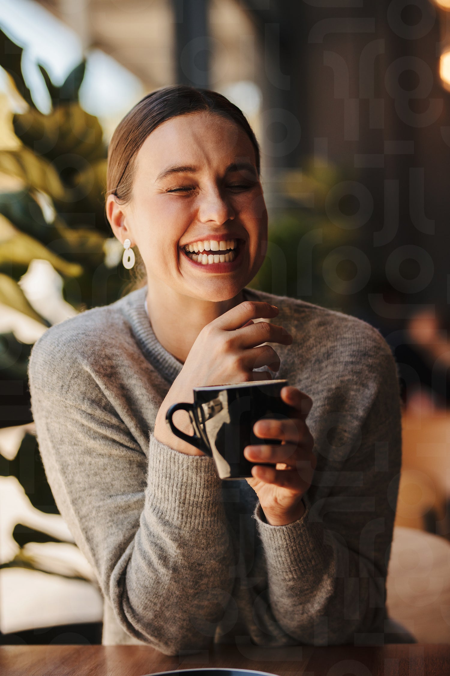Pretty woman smiling at a coffee shop
