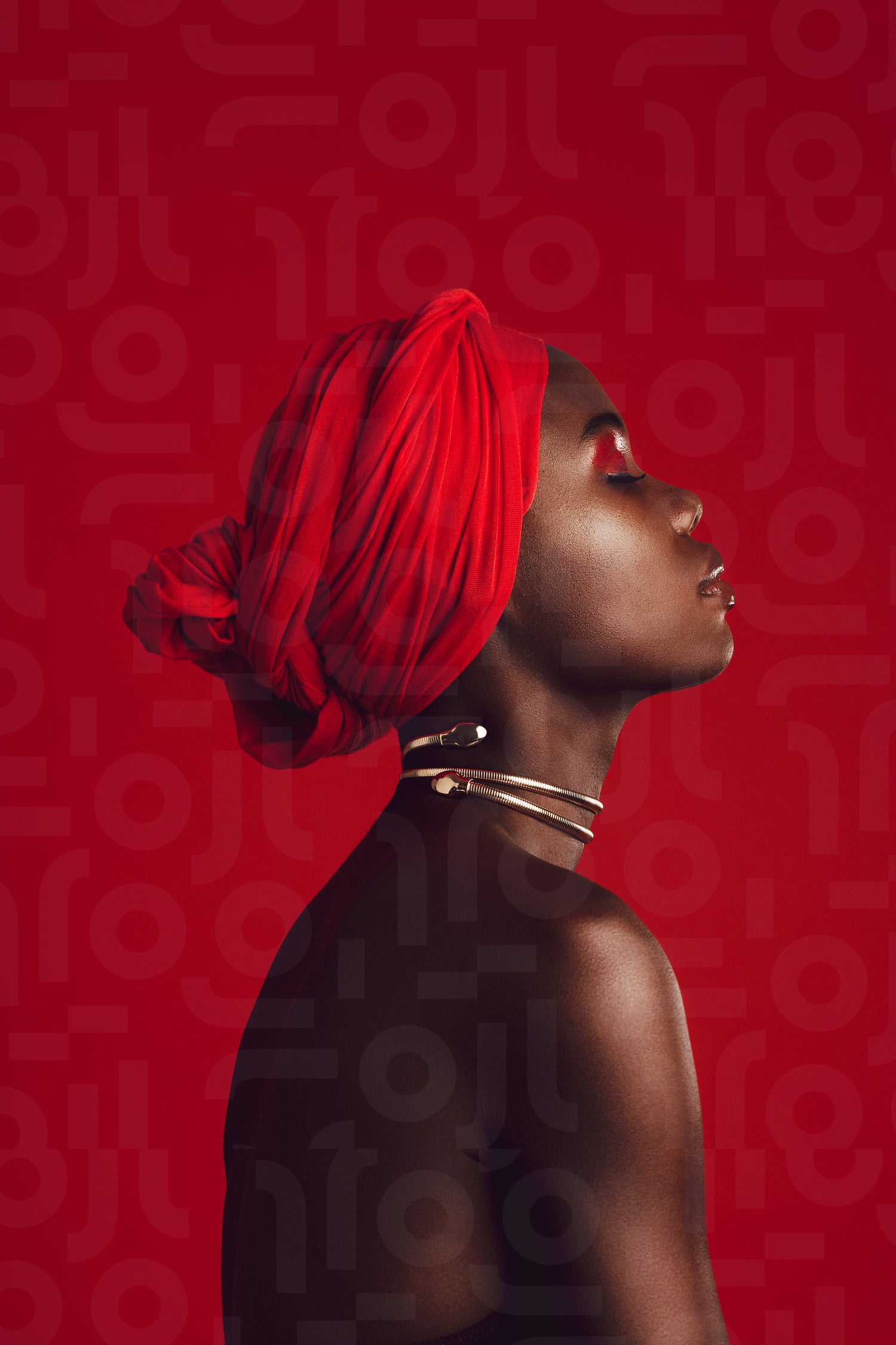 Profile view of attractive woman wearing a red turban