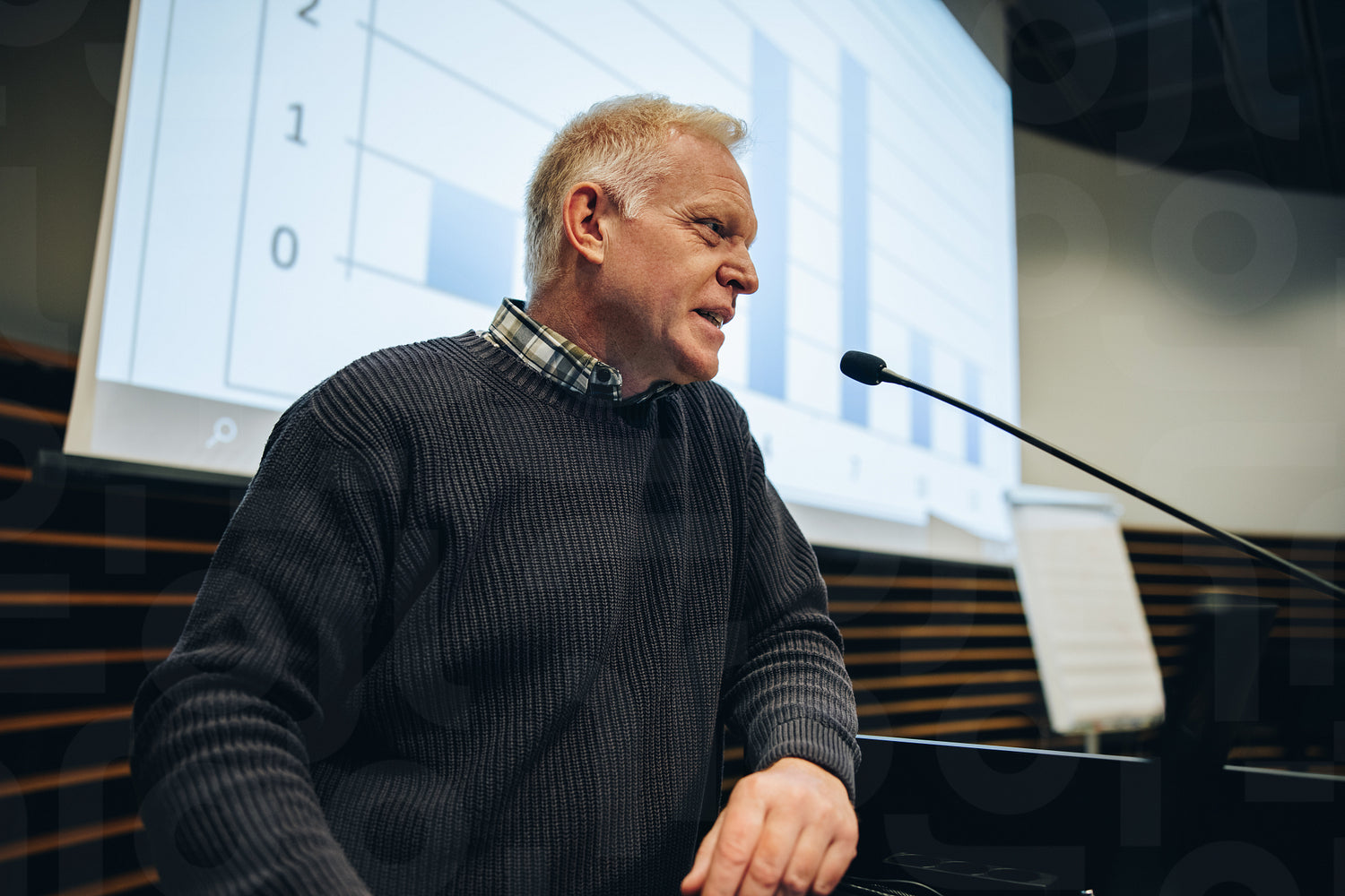 Senior businessman giving presentation during a seminar. Senior entrepreneur talking during a summit.