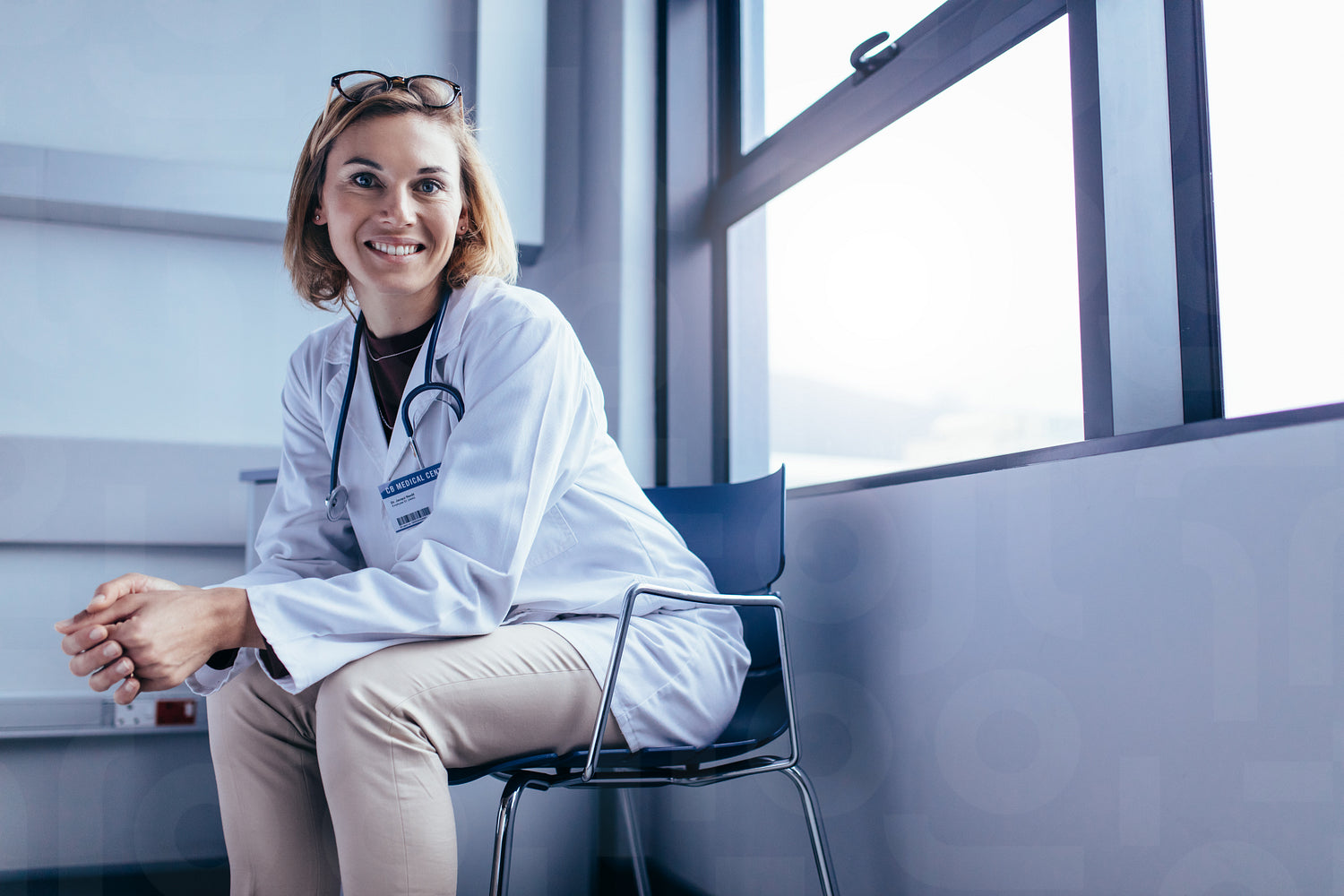 Smiling female doctor sitting in hospital room