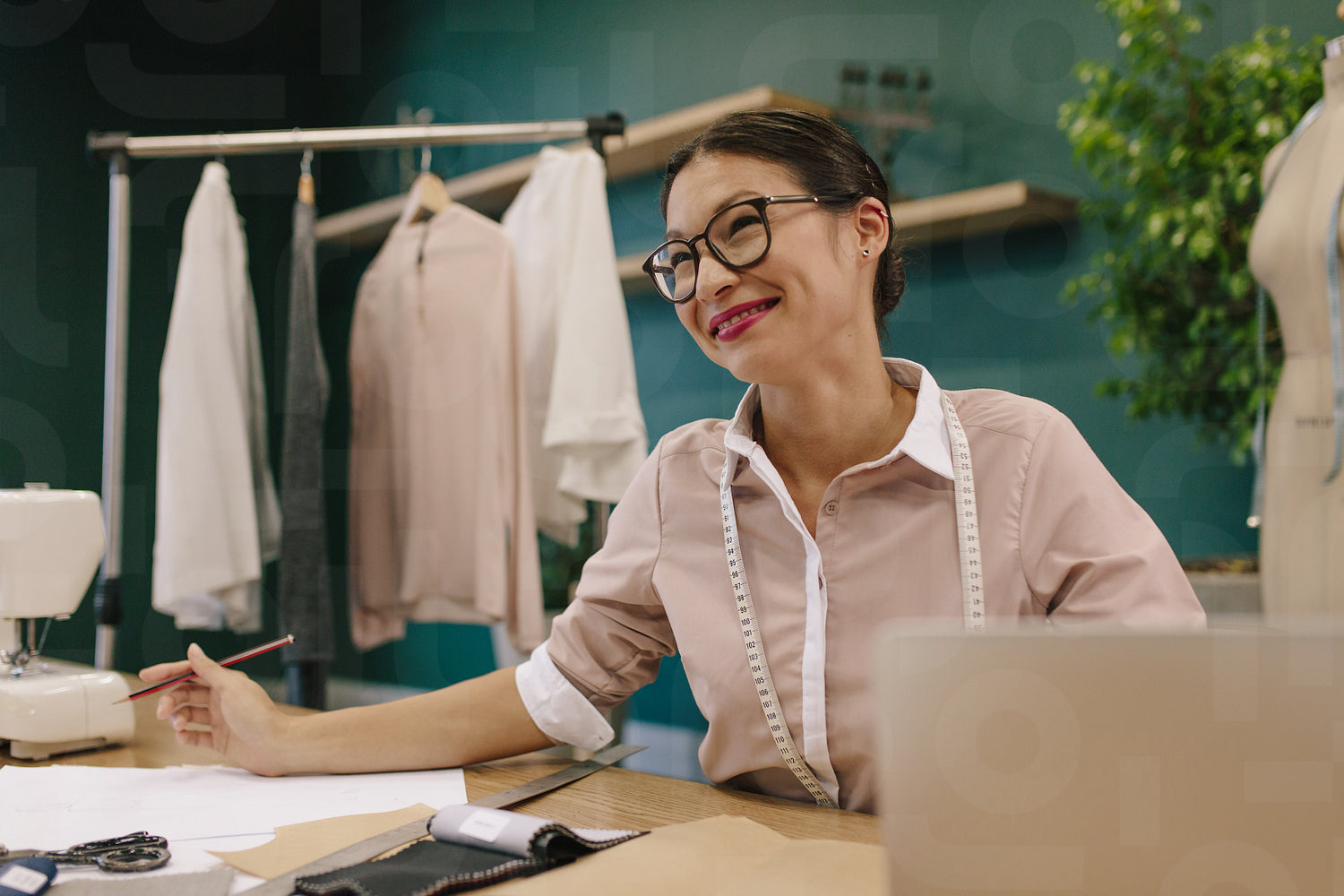 Smiling female dressmaker working at her desk