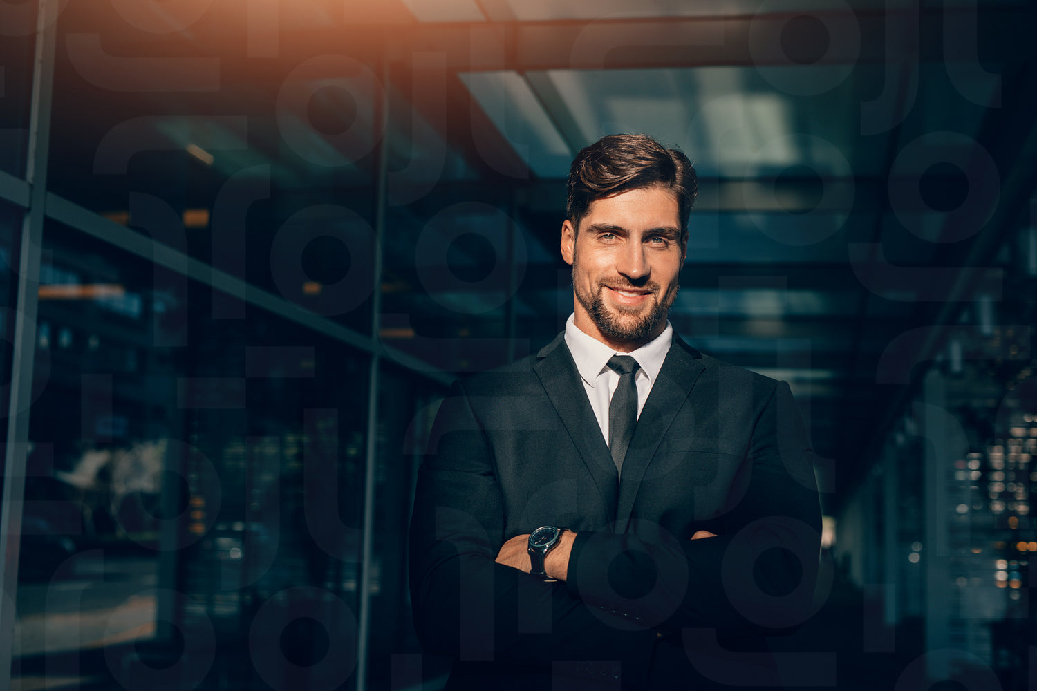 Smiling young businessman standing with his arms crossed