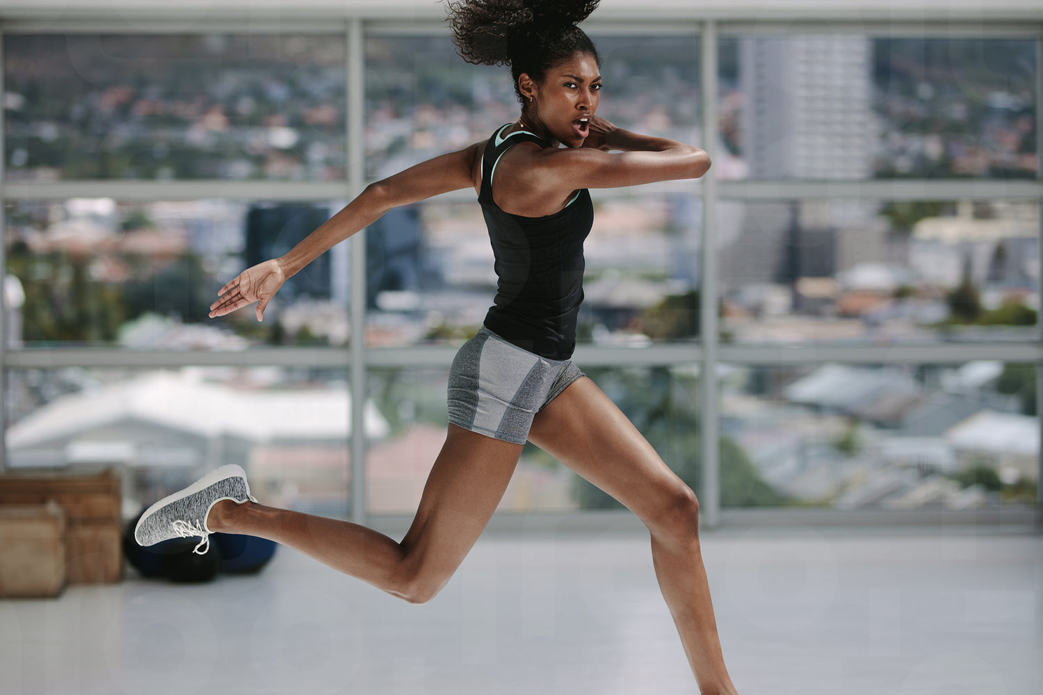 Sporty woman doing exercises at fitness studio. Female exercising at gym.