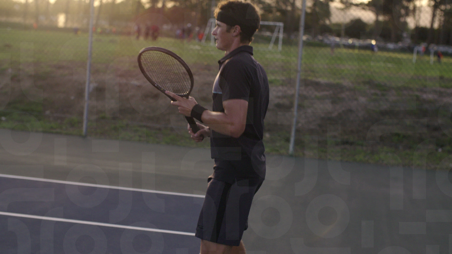 Professional tennis player hitting forehands from baseline. Man in sportswear playing a game of tennis on hard court.