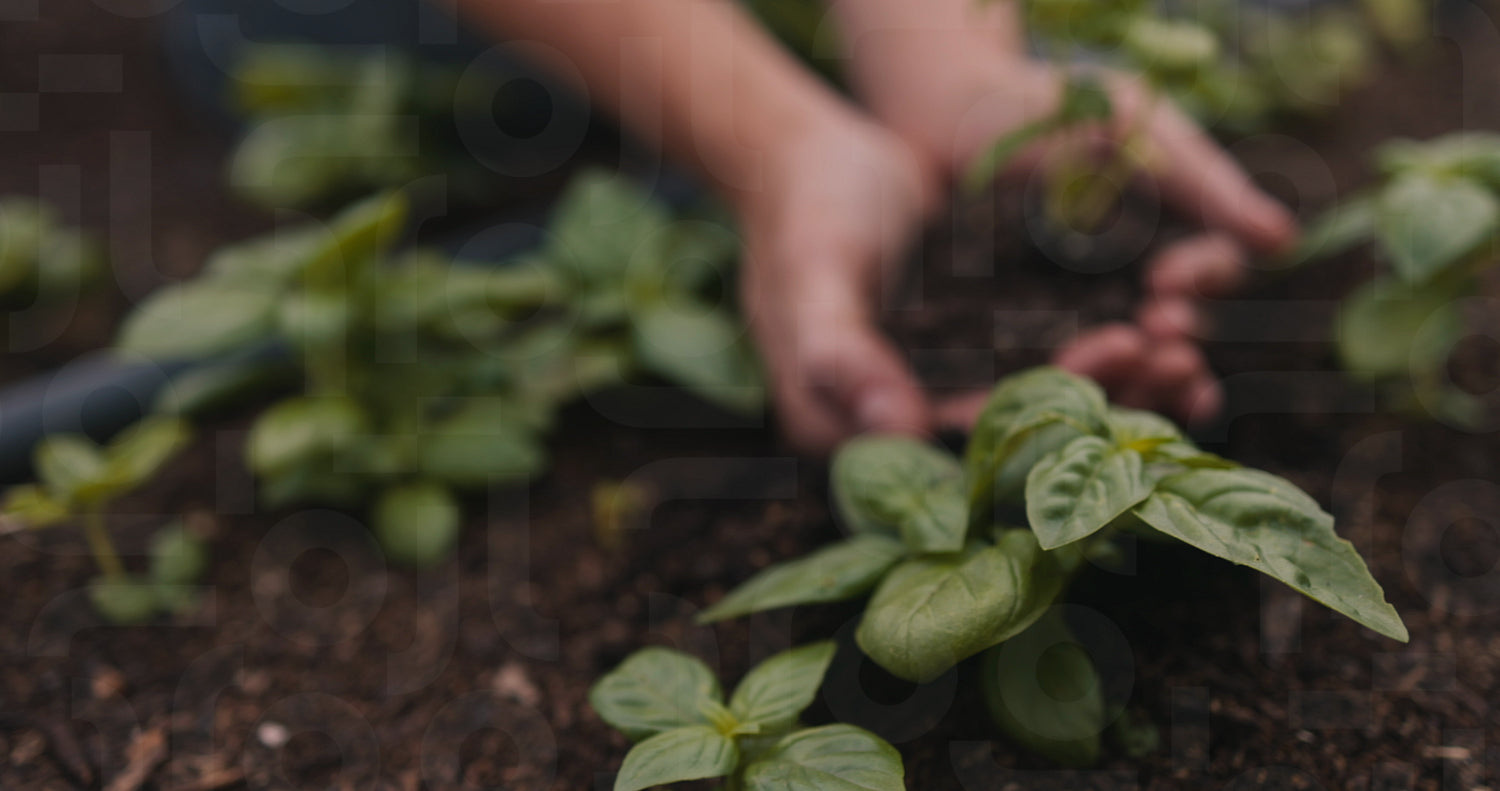 Unrecognizable female farmer carrying a green seedling growing in soil. Anonymous organic farmer protecting a growing plant in cupped hands. Farmer caring for her plants in an agricultural field.
