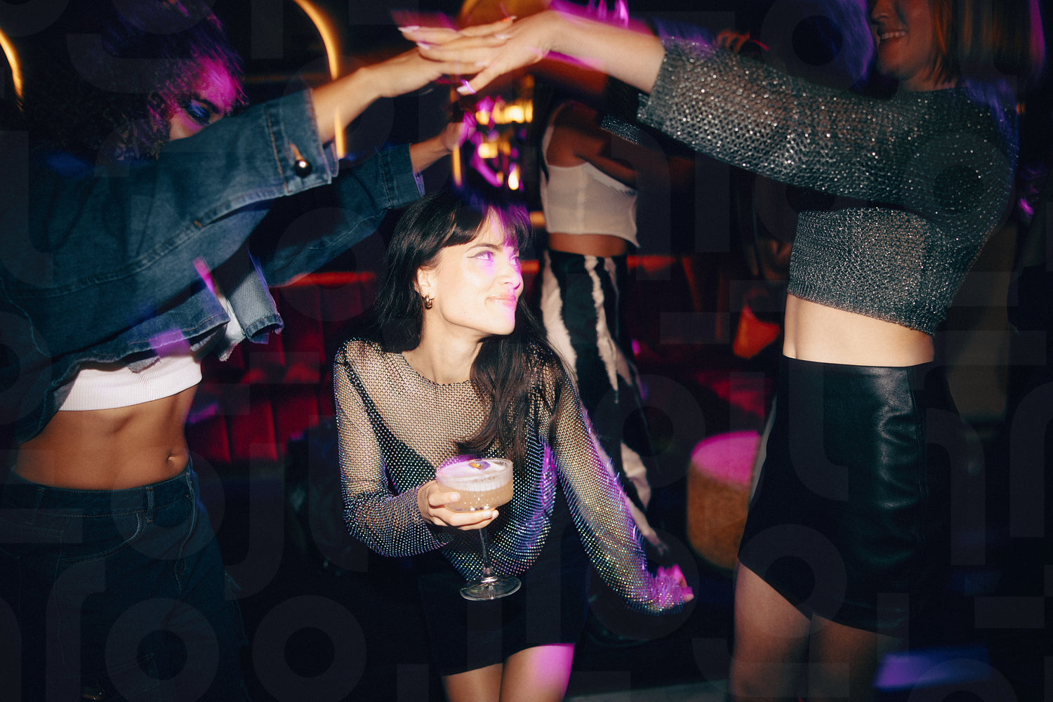 Vibrant night out with friends enjoying drinks and dancing in a lively setting
