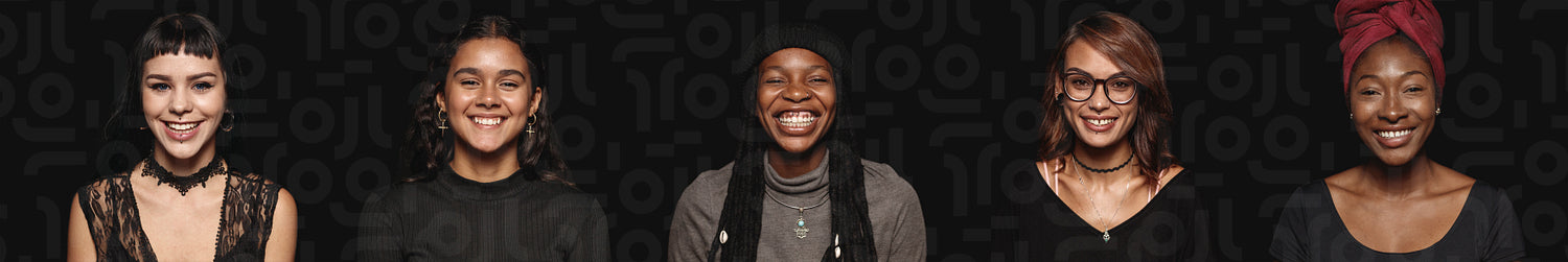 Panoramic close up shot of multiethnic women. Cropped shot of smiling young women on black background.