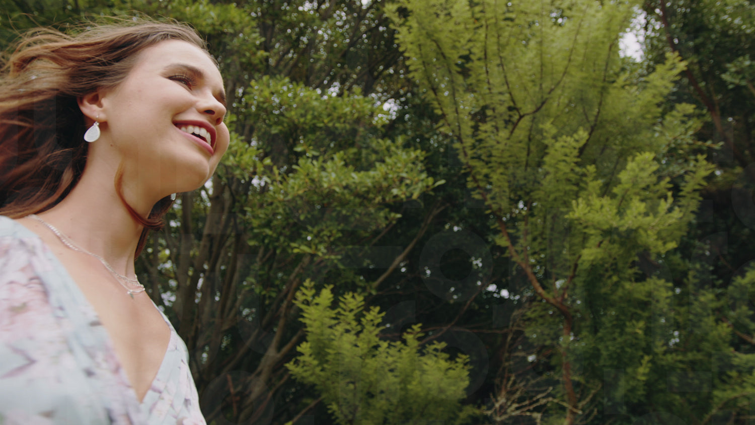 Pretty female enjoying a day out in nature. Woman dancing at the park.