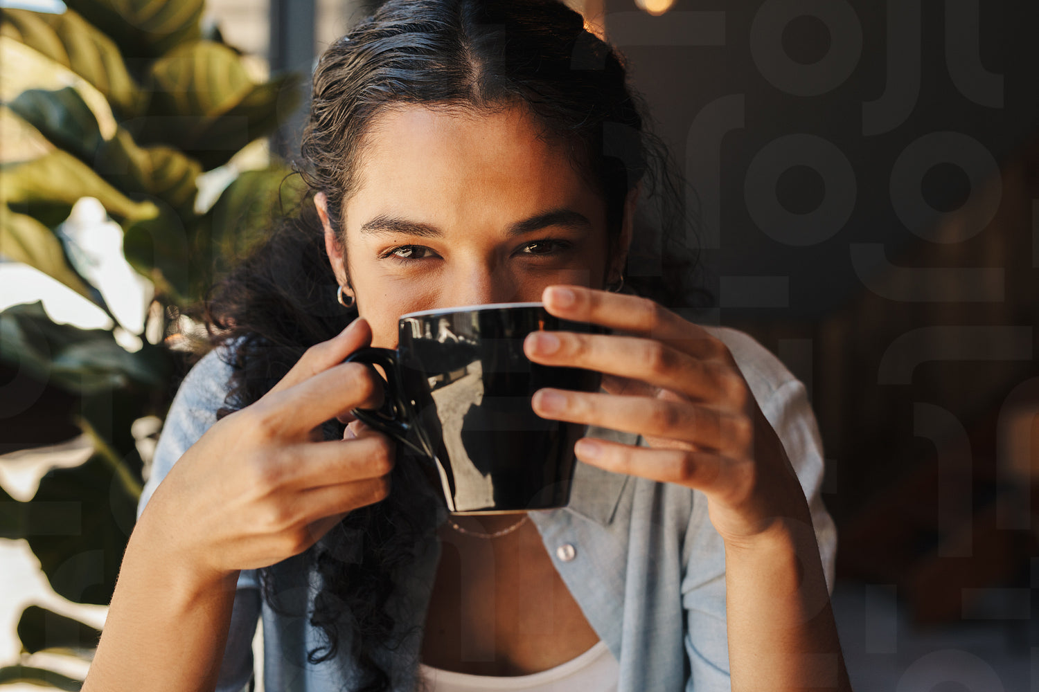 Close up of young woman drinking coffee at cafe. Female having a cup of coffee.