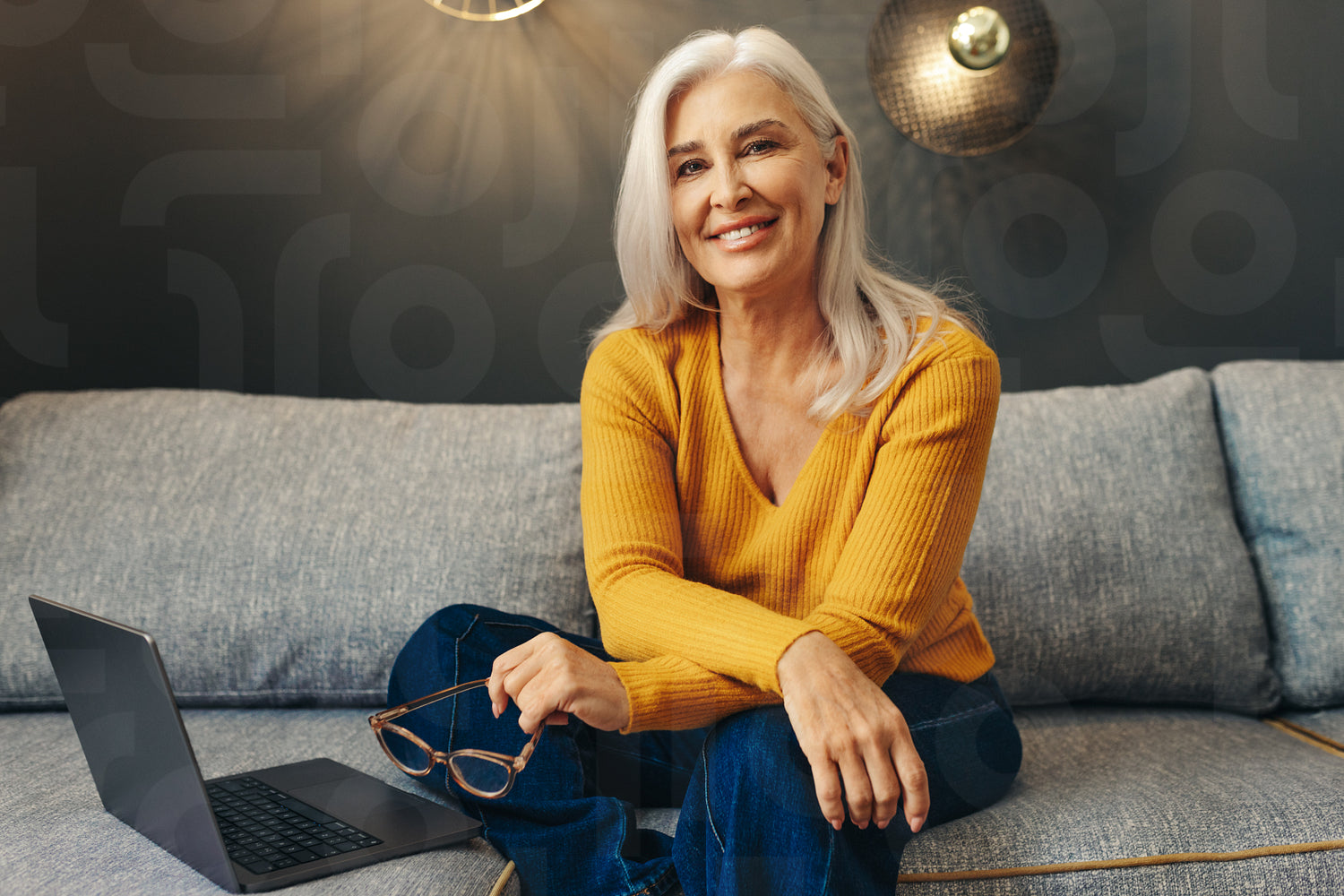 Senior woman working comfortably from her home office, enjoying the benefits of remote work. Mature female professional embracing the freedom and convenience that remote work provides.