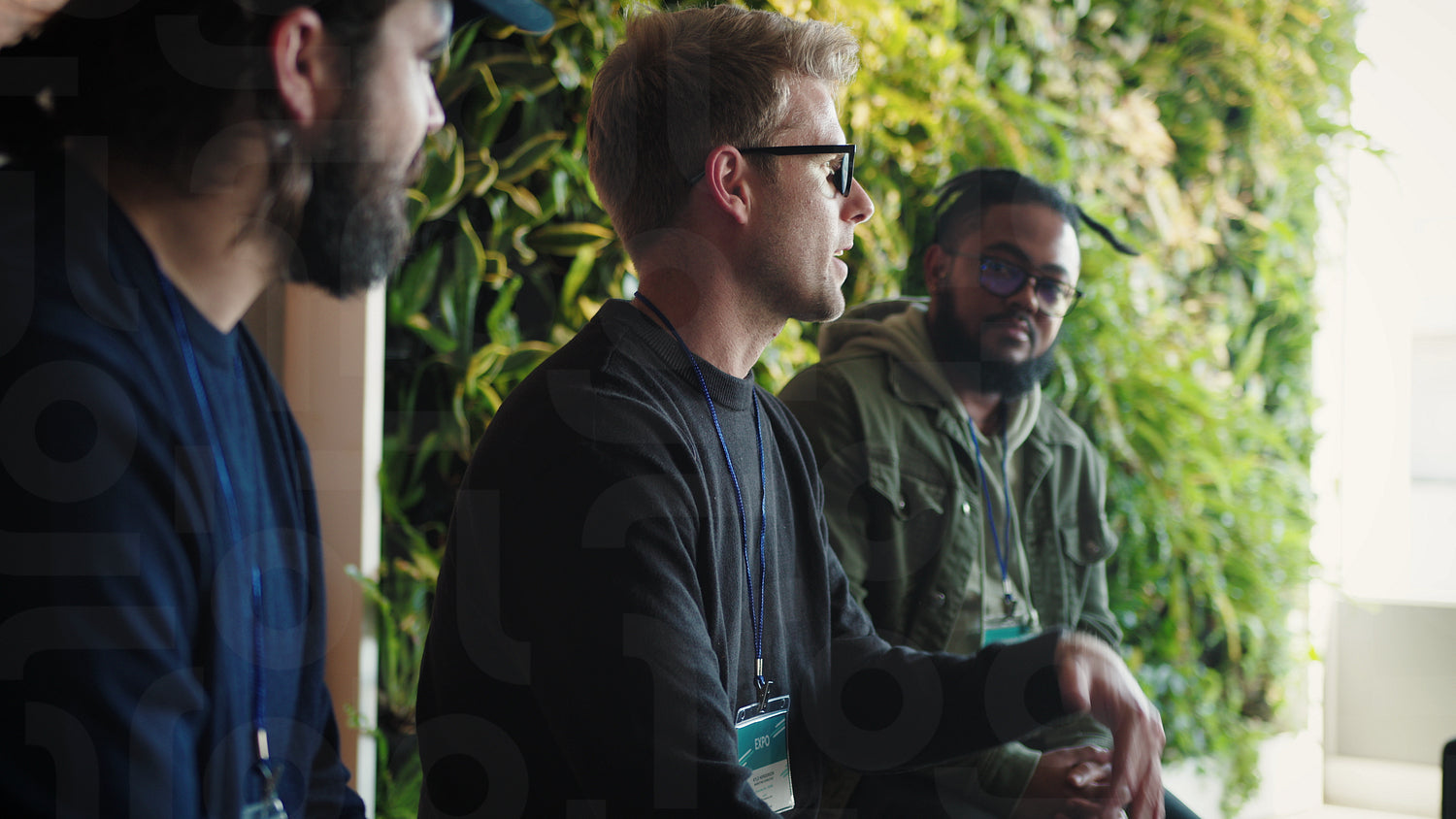 Young business men having a discussion in a workshop. Group of young professionals having a conference meeting. Panel of entrepreneurs talking in an office.