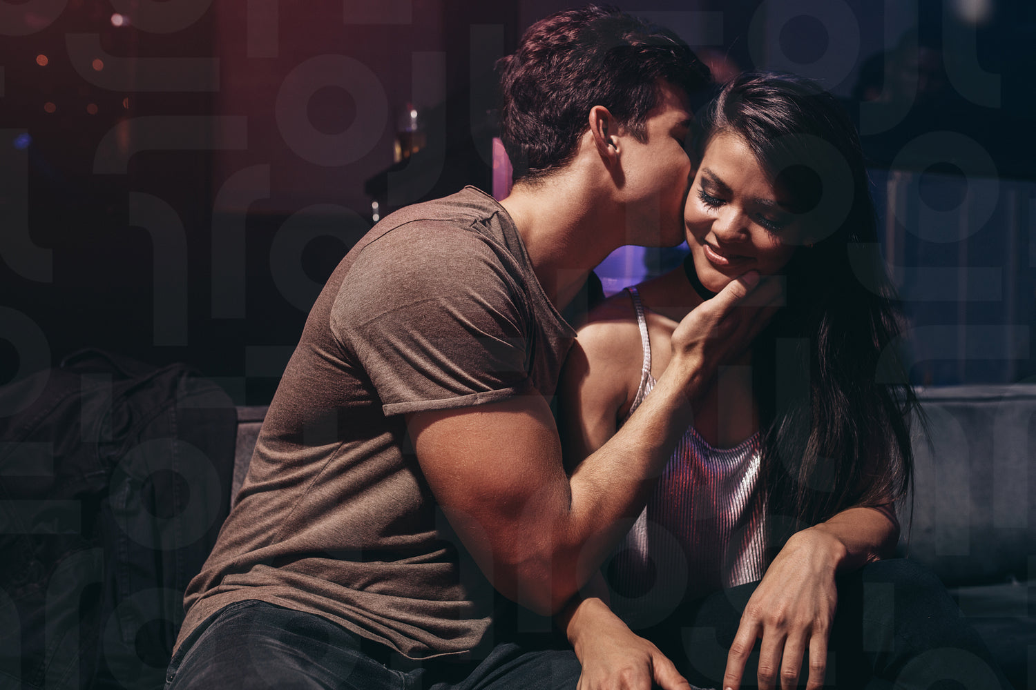 Romantic young couple at the night club. Young couple enjoying in the party at pub.