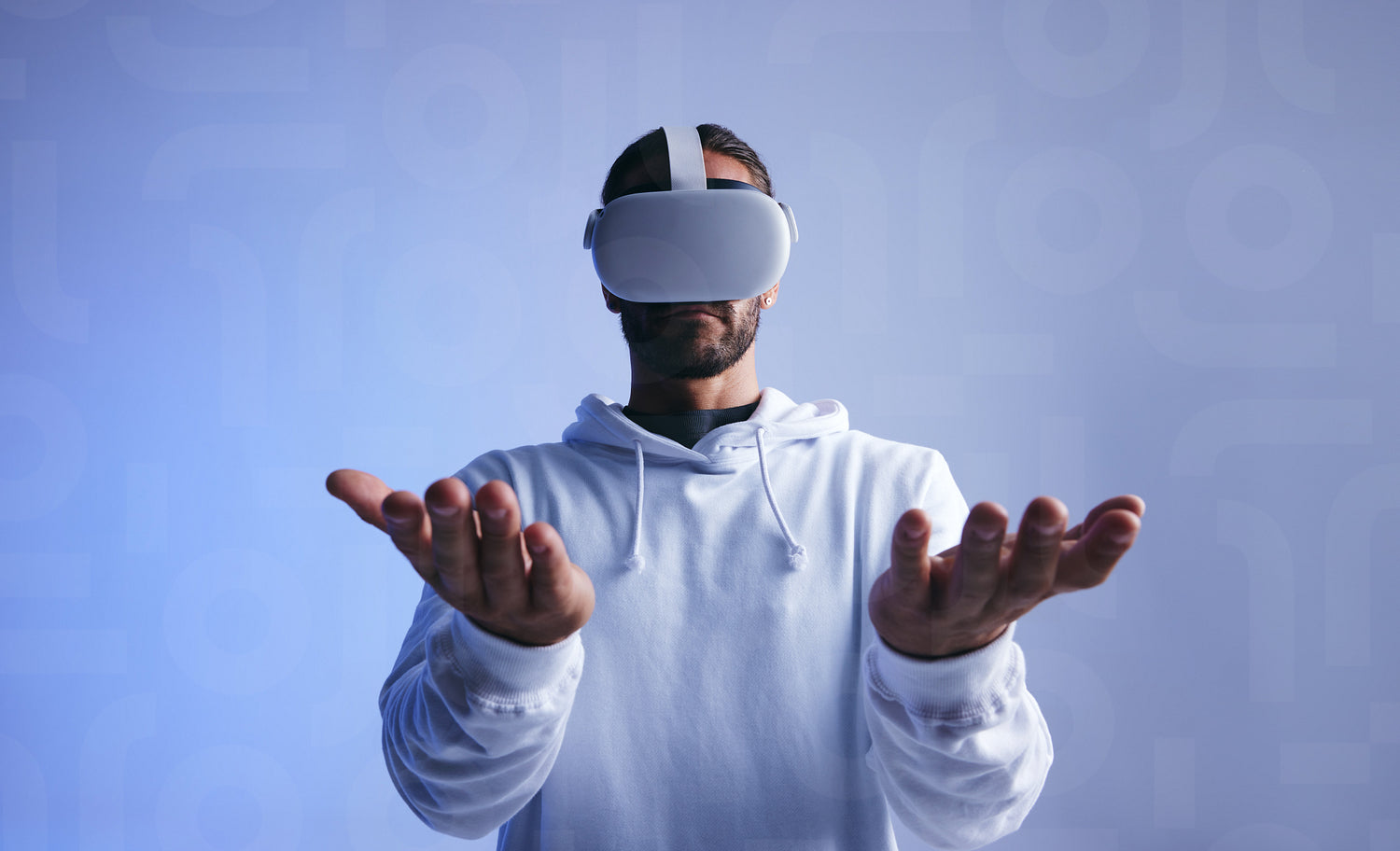 Young man holding his hands out in virtual reality