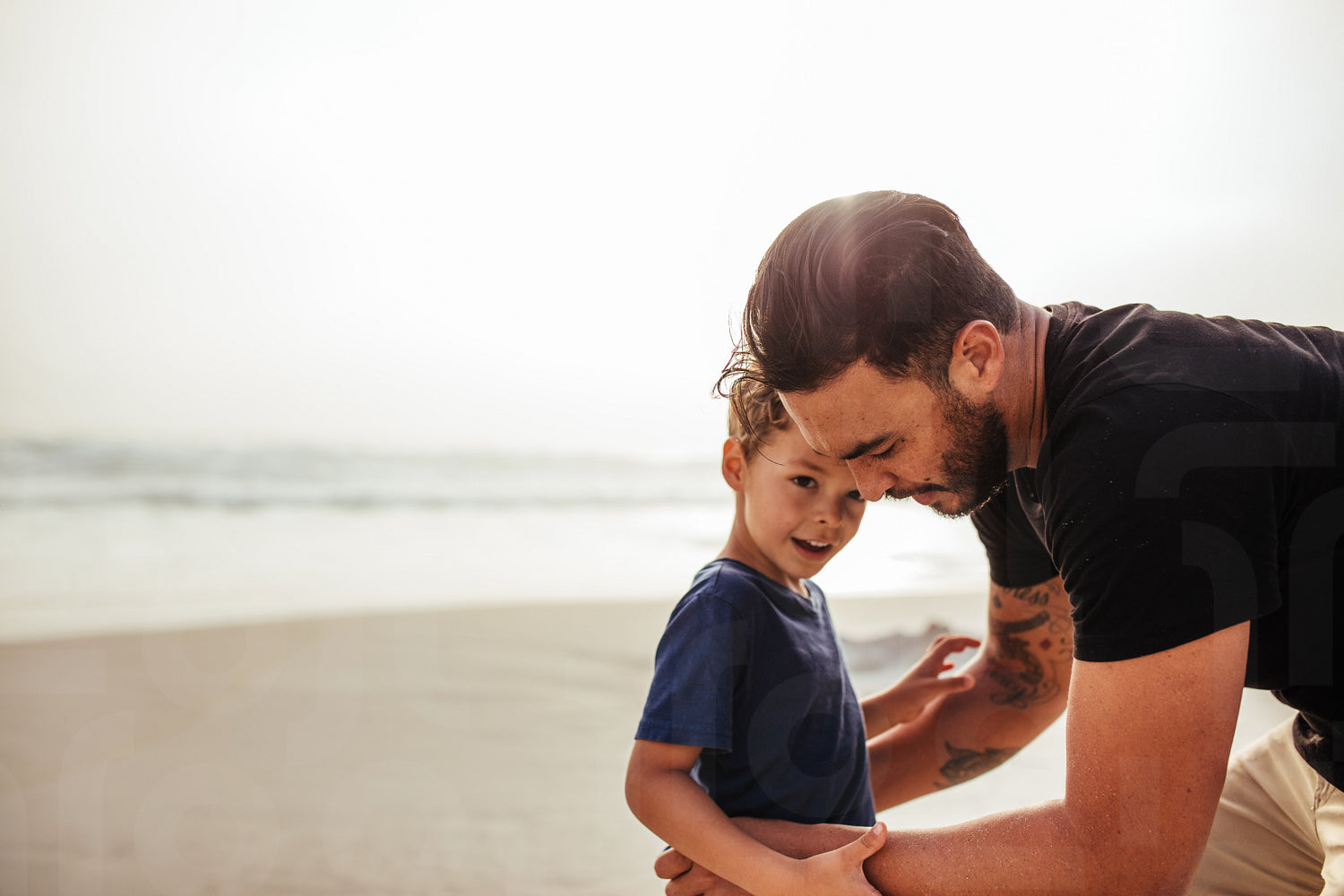 Young man with his son at the beach