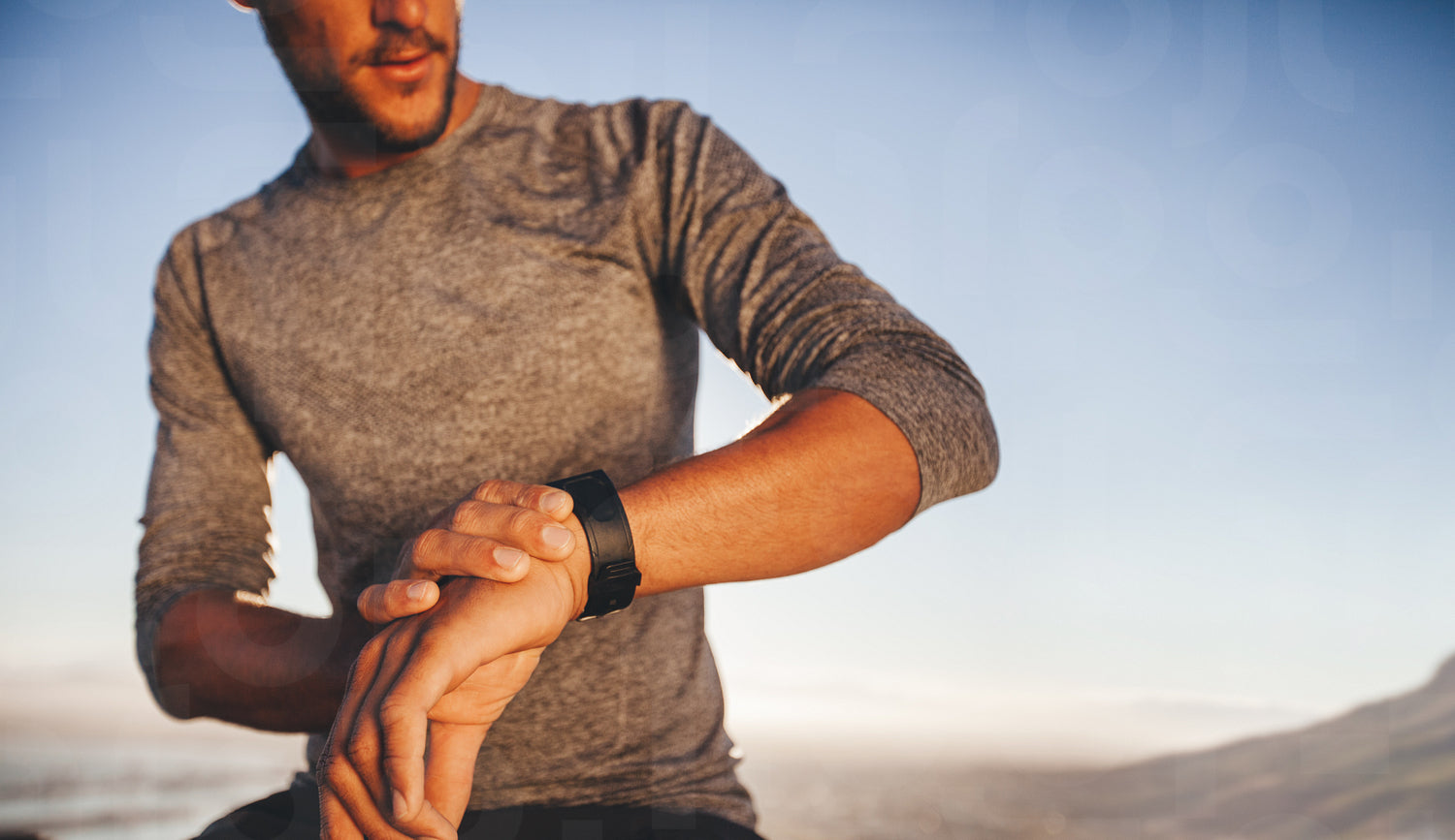 Young runner checking the time on his wristwatch